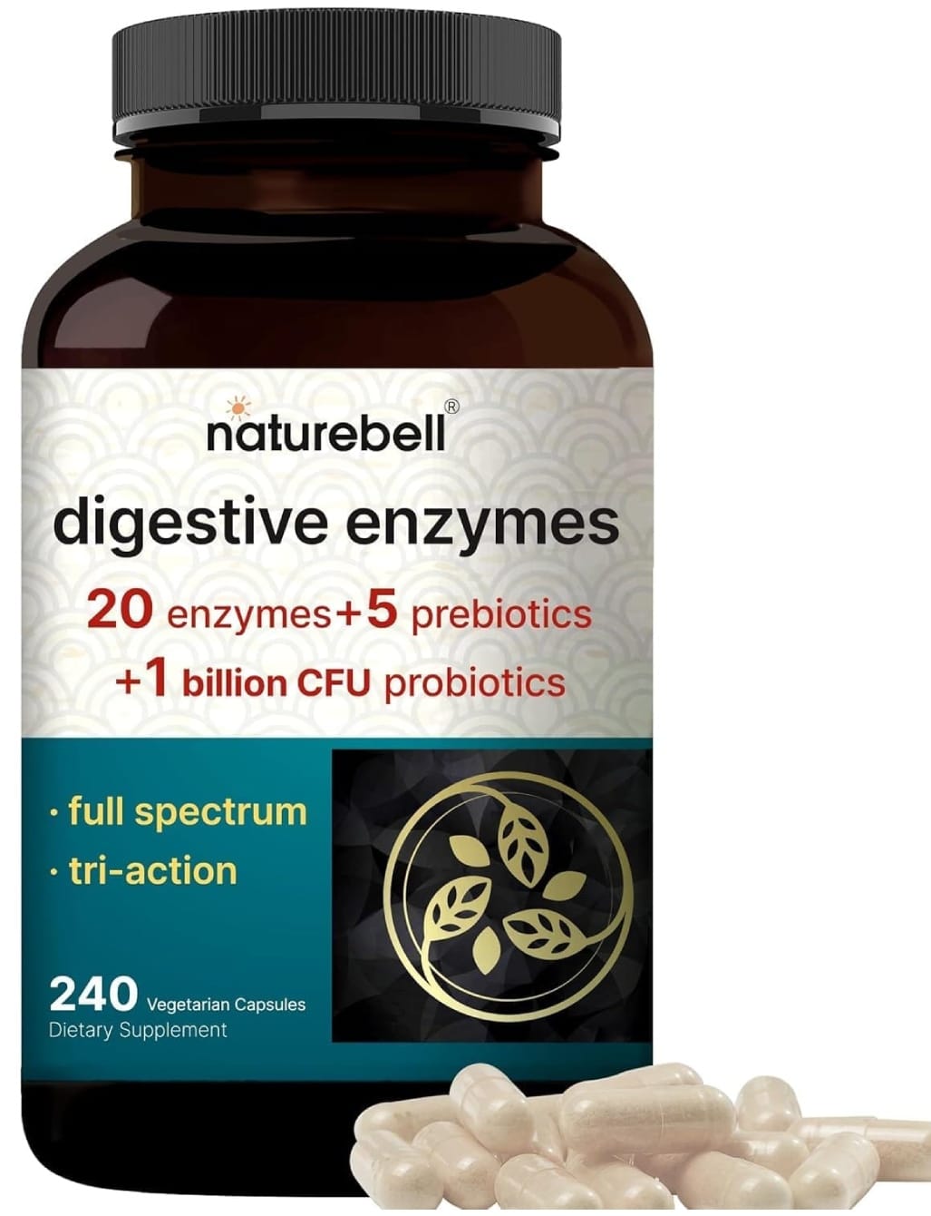Digestive enzyme supplement to support healthy digestion, acid reflux, food sensitivities, nutrient absorption, and gut comfort, helping break down proteins, fats, and carbohydrates for optimal digestive health.